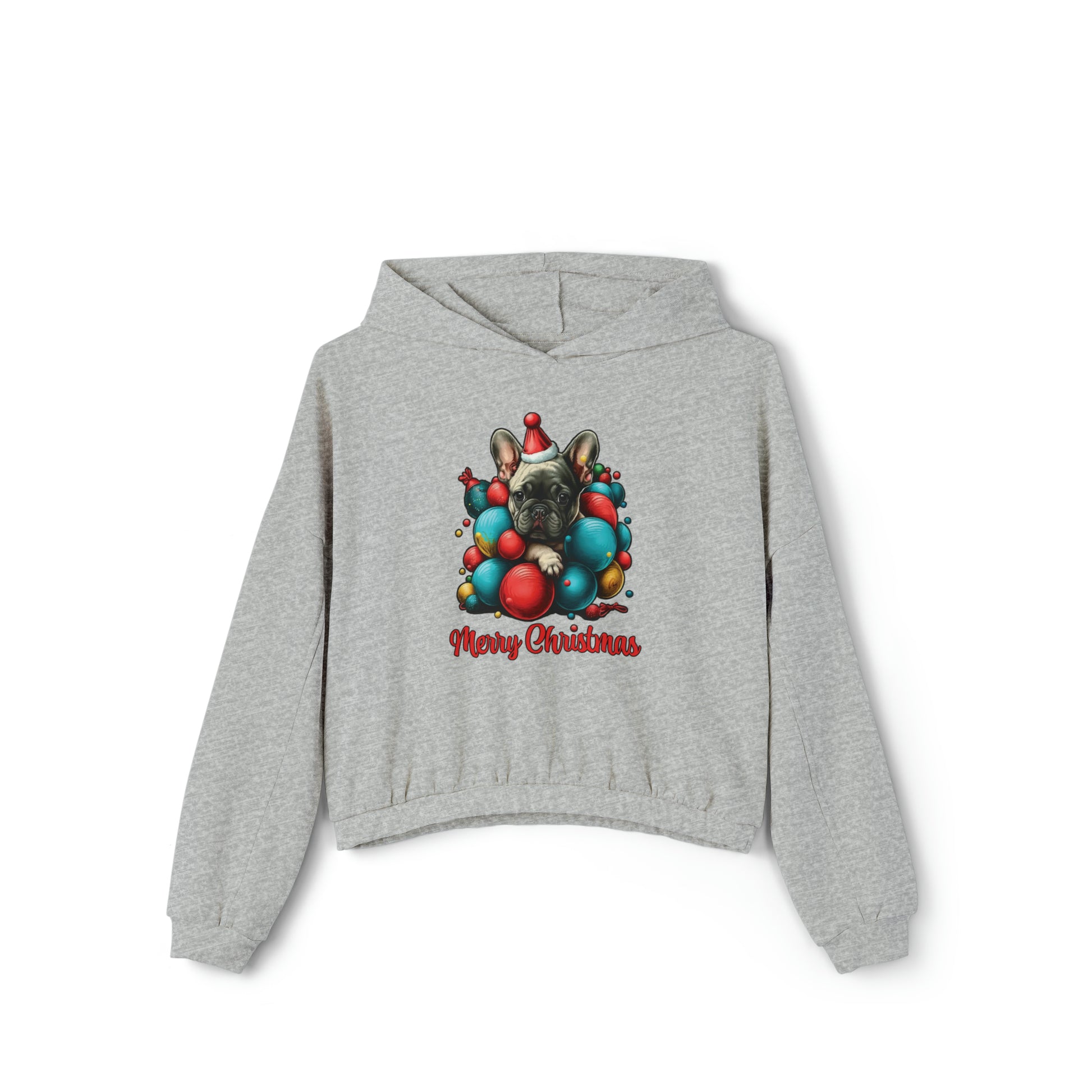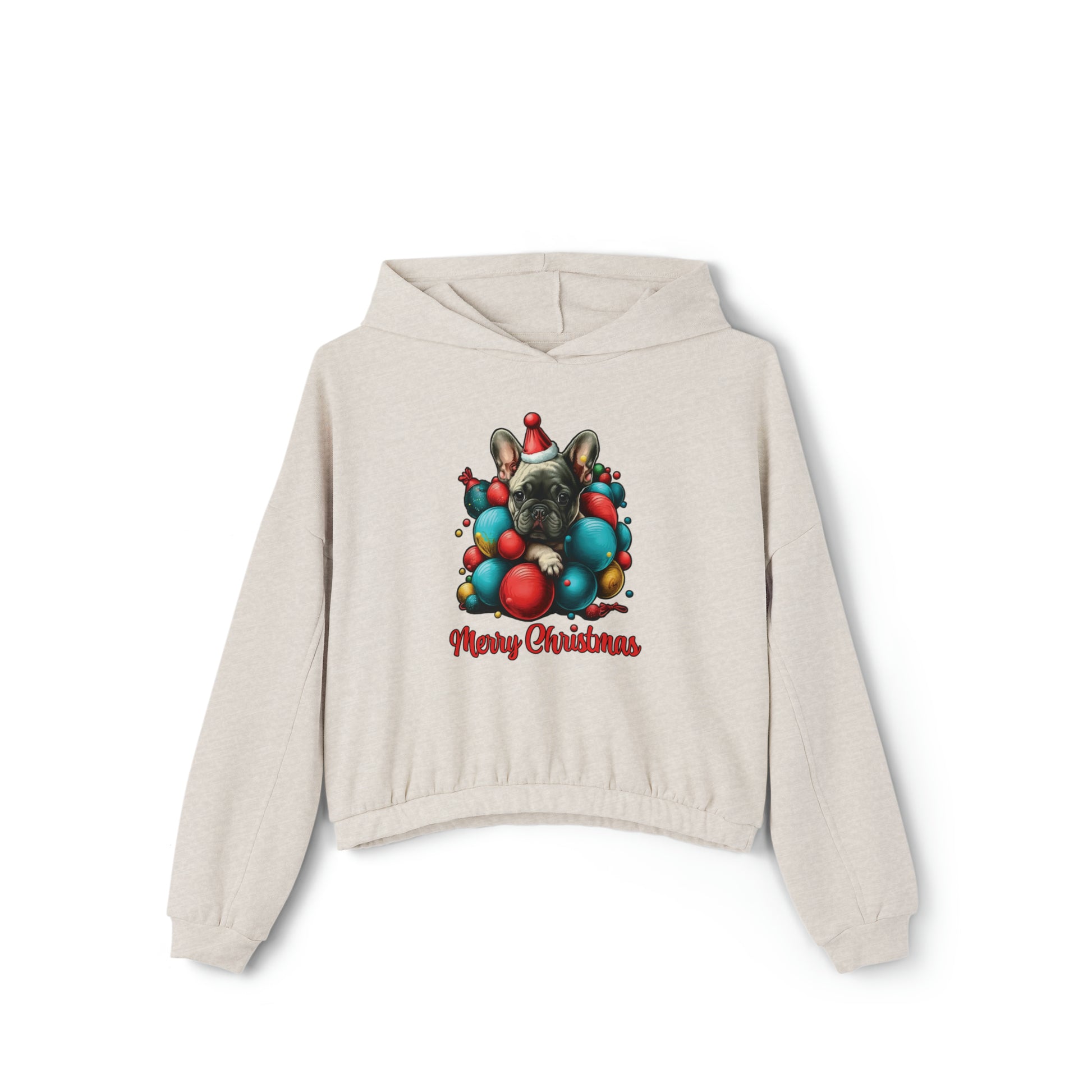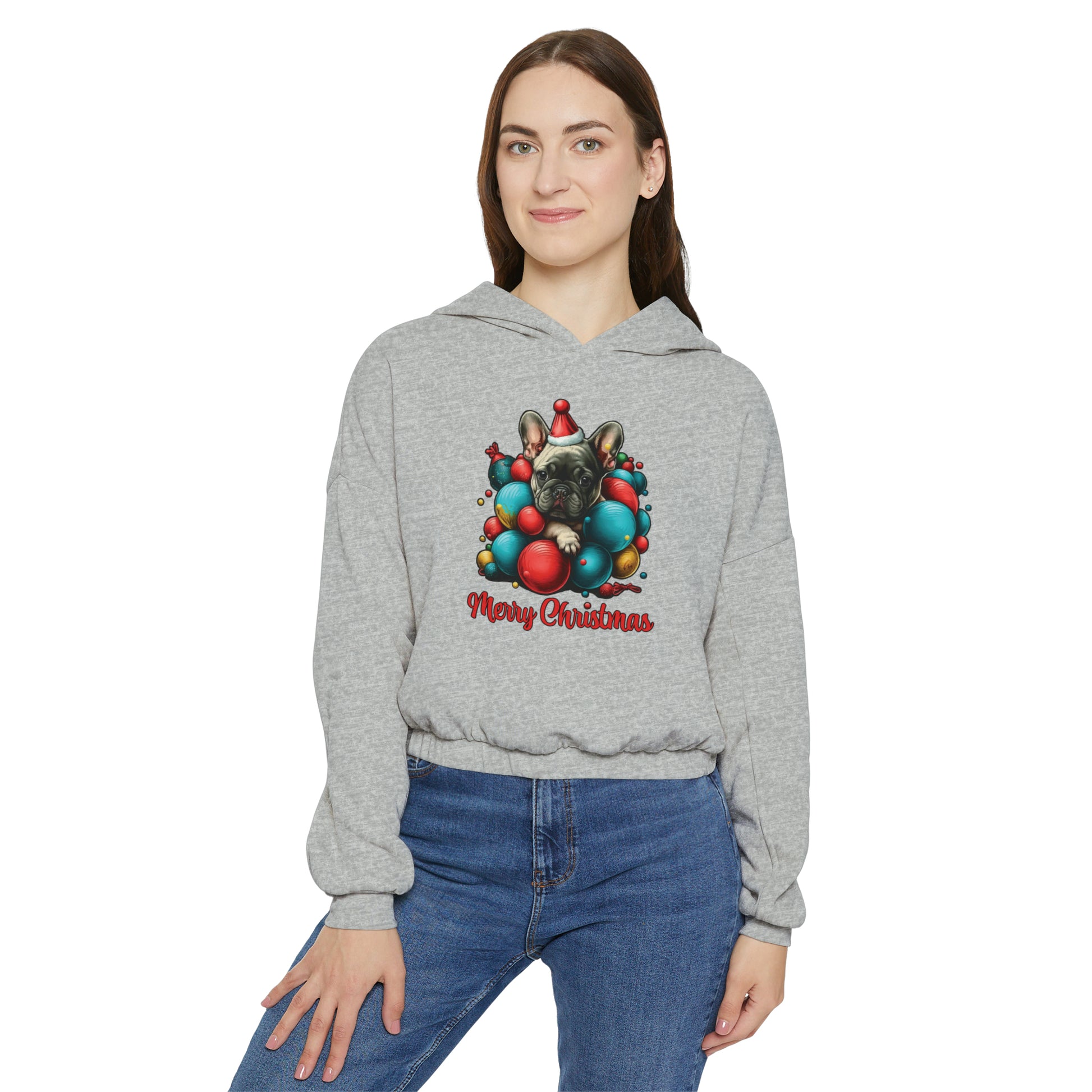 Merry Christmas French Bulldog Puppy - Women's Cinched Bottom Hoodie